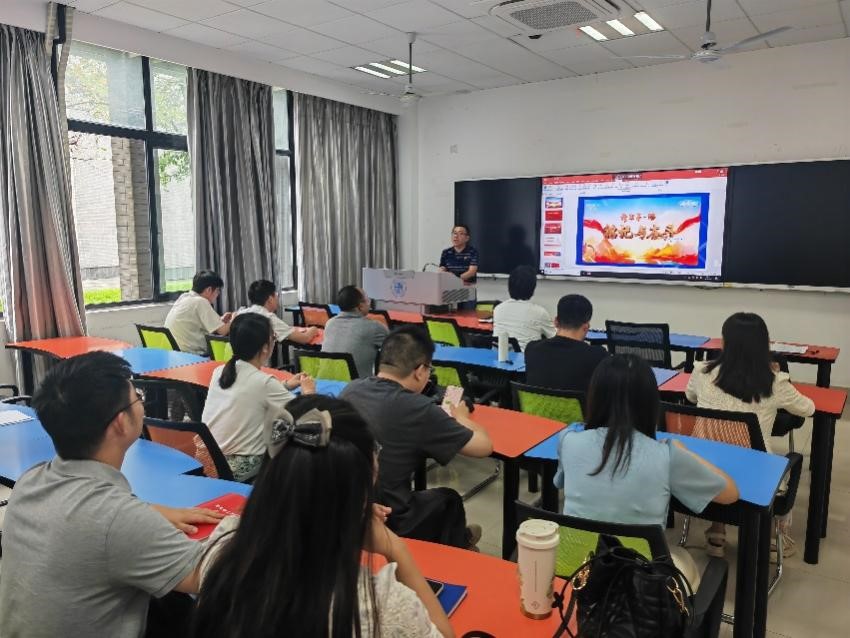 专题党课学习结束后,全体党员同志共同欣赏了抗日战争胜利暨反法西斯胜利80周年大合唱《松花江上》《保卫黄河》《在太行山上》《没有共产党就没有新中国》等经典抗战歌曲。最后,学院党委书记甘霖同志分享了他对本次党课学习的心得体会,并带领全体党员同志一起饱含深情地学唱抗战经典歌曲《松花江上》。