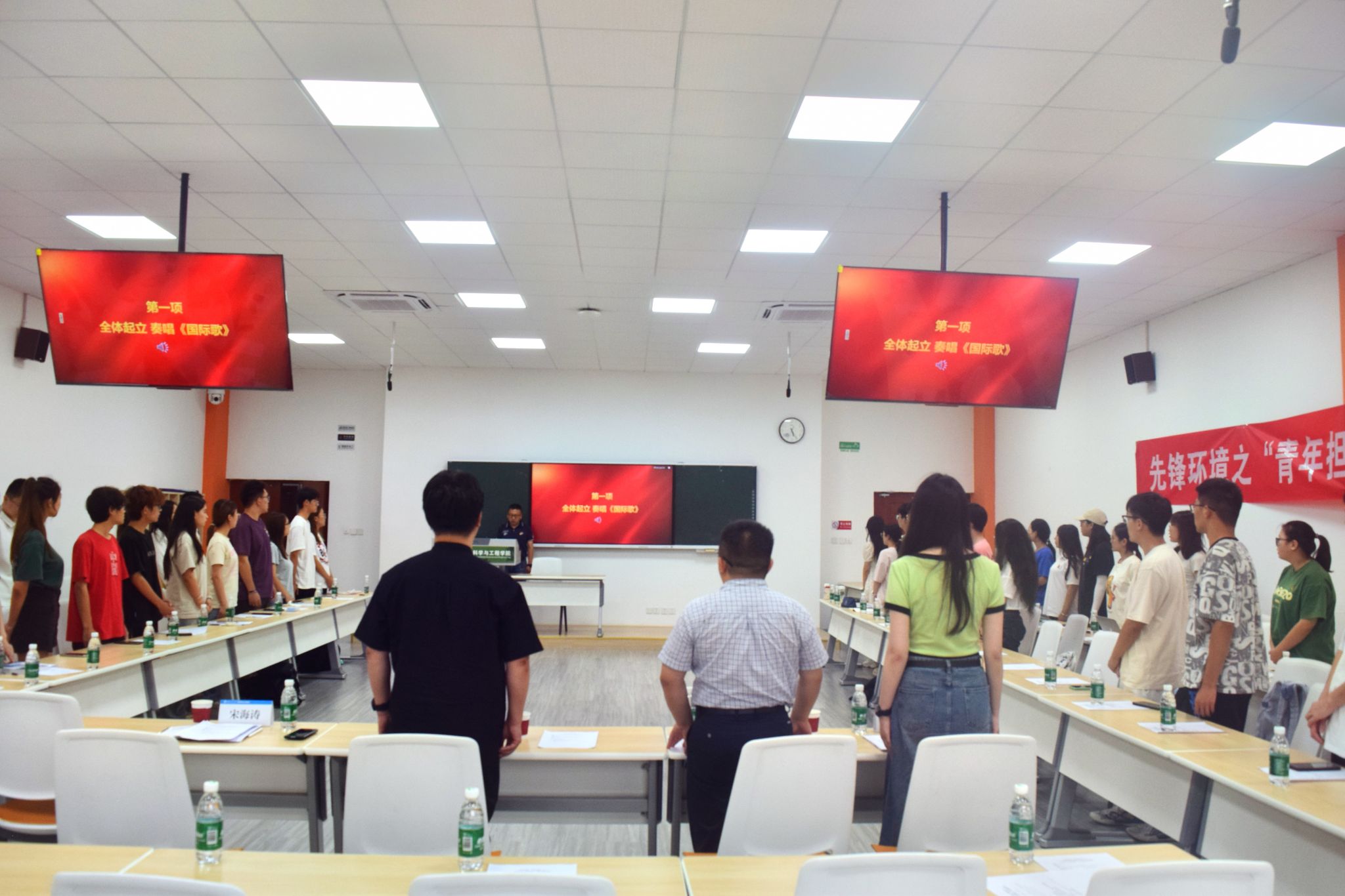 宣誓仪式在庄严的《国际歌》中拉开序幕,全体党员在雄浑激昂的旋律中起立肃穆。