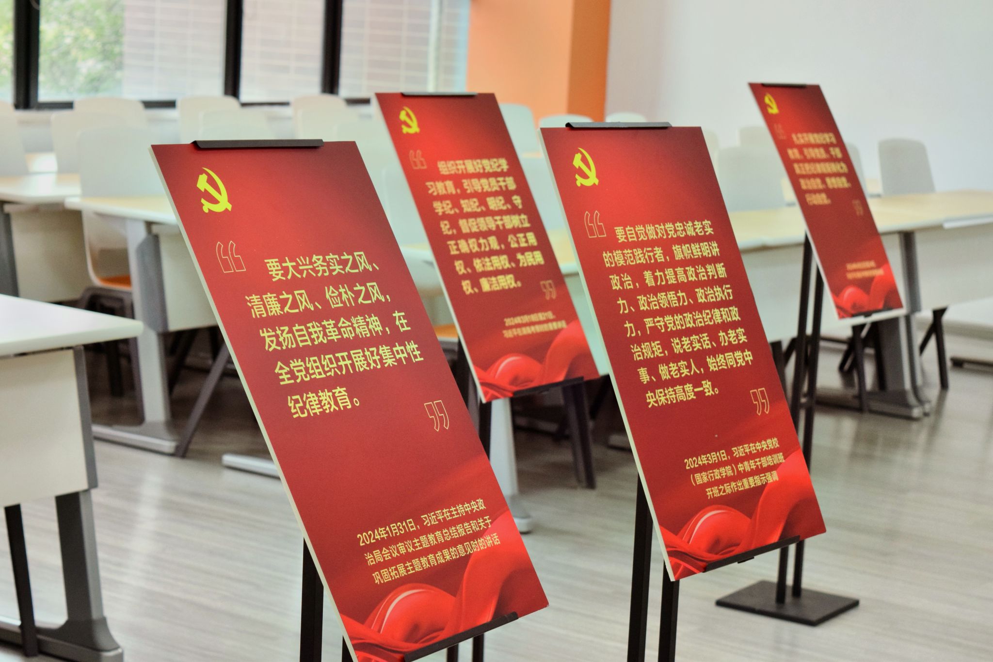 在活动场地内、教学连廊区域设置了党纪学习微展览,营造学院沉浸式的党纪学习氛围。活动开始前,全体与会人员参加了微展。