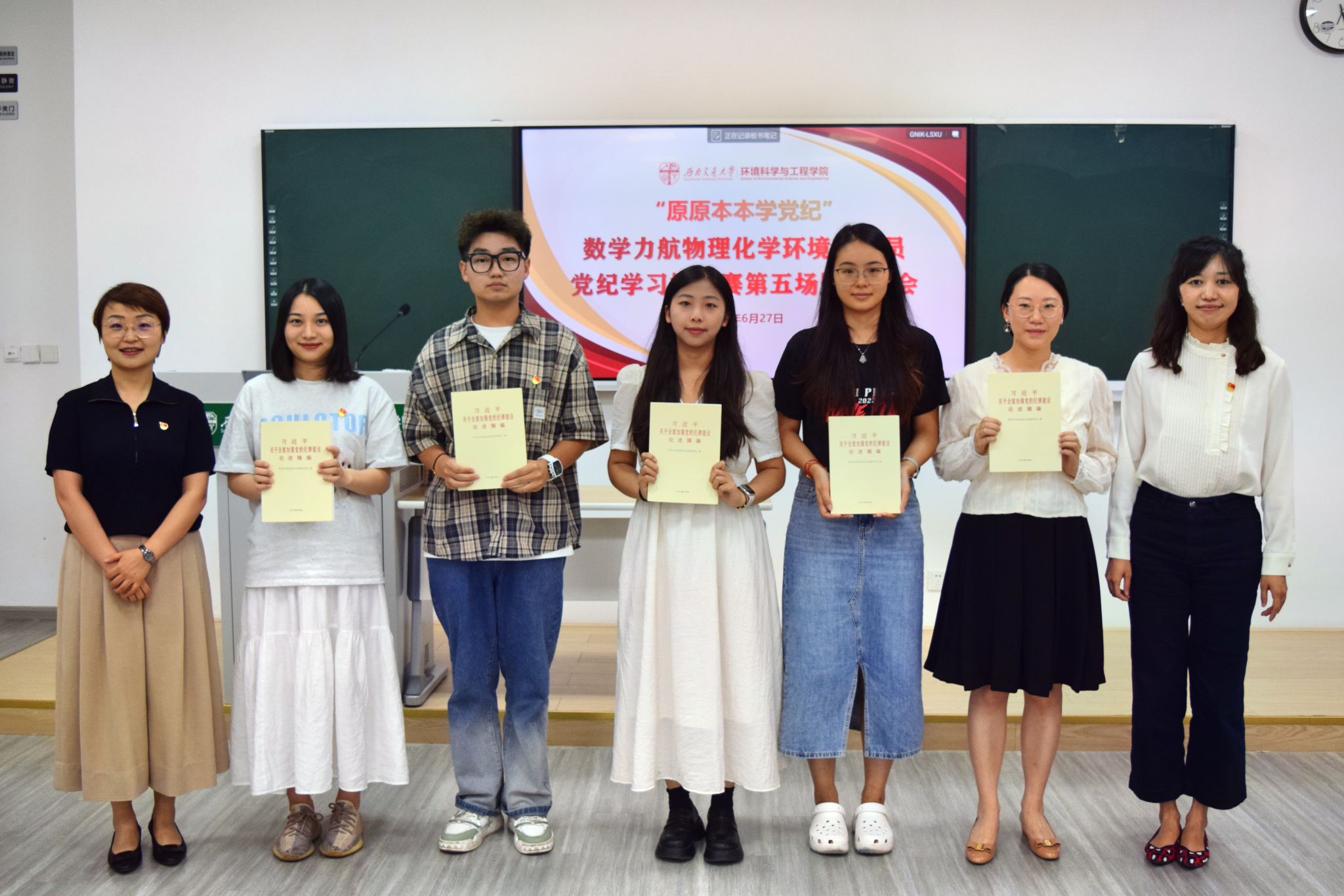 党委书记甘霖、党委组织部副部长何诣寒、党委学生工作部副部长谢力、党委巡察办副主任迟艳艳、校团委组织工作办公室部长张敬文、力学与航空航天学院党委副书记孔祥彬、化学学院党委副书记张春燕、第一版主