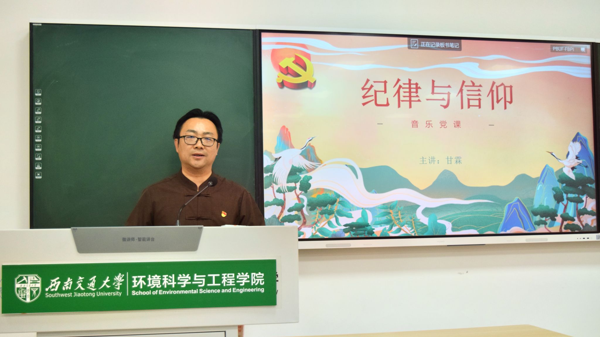 党委书记甘霖作《纪律与信仰》主题分享。甘霖书记以一则短片带领各位老师回顾党的百年光辉历程,甘书记讲到,纪律是党的生命线,我们党从一个只有50余名党员的小党,发展成拥有9000多万名党员的大党,是在党的纪律建设的有力保障之下的。因此,各位党员需严格遵守党的纪律,不断提高思想意识,增强行动自觉。最后,全体起立共唱《我宣誓》,在歌声中重温入党誓词,甘书记强调,希望大家把遵守党的纪律作为对党应尽的义务和责任,以实际行动践行入党誓词。