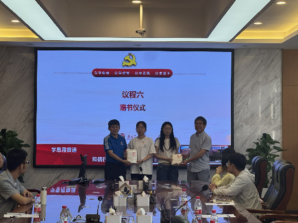 在互动交流环节,学生党支书围绕党建与科研融合中的实际问题展开深入探讨。贺玉龙教授、陶思宇副教授结合自身经验,提供了详细的解答,为各党支部解决实际工作中的难题提供了有益借鉴。活动最后,贺玉龙教授、陶思宇副教授分别向党支书代表赠送《新时代新思想新作为》和《深入学习习近平关于交通强国的重要论述》两本书籍,鼓励党支书要持续学习、用党的先进理论武装头脑,为党支书日常工作注入新动力。