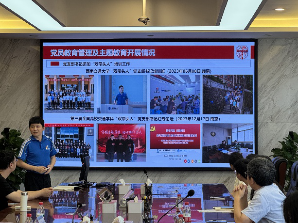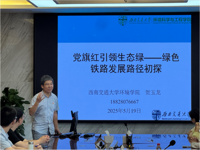 教工党员贺玉龙教授以《党旗红引领生态绿——绿色铁路发展路径初探》为题作主题分享。贺教授立足生态文明建设的时代背景,深入阐述了将绿色发展理念融入交通强国战略的重要意义。强调以绿色技术为支撑,在保障铁路运输安全高效的同时,降低对生态环境的负面影响,推动铁路行业可持续发展。贺教授的分享拓展了绿色铁路发展研究的新视野,明确了党建引领下生态与交通融合发展的实践路径。