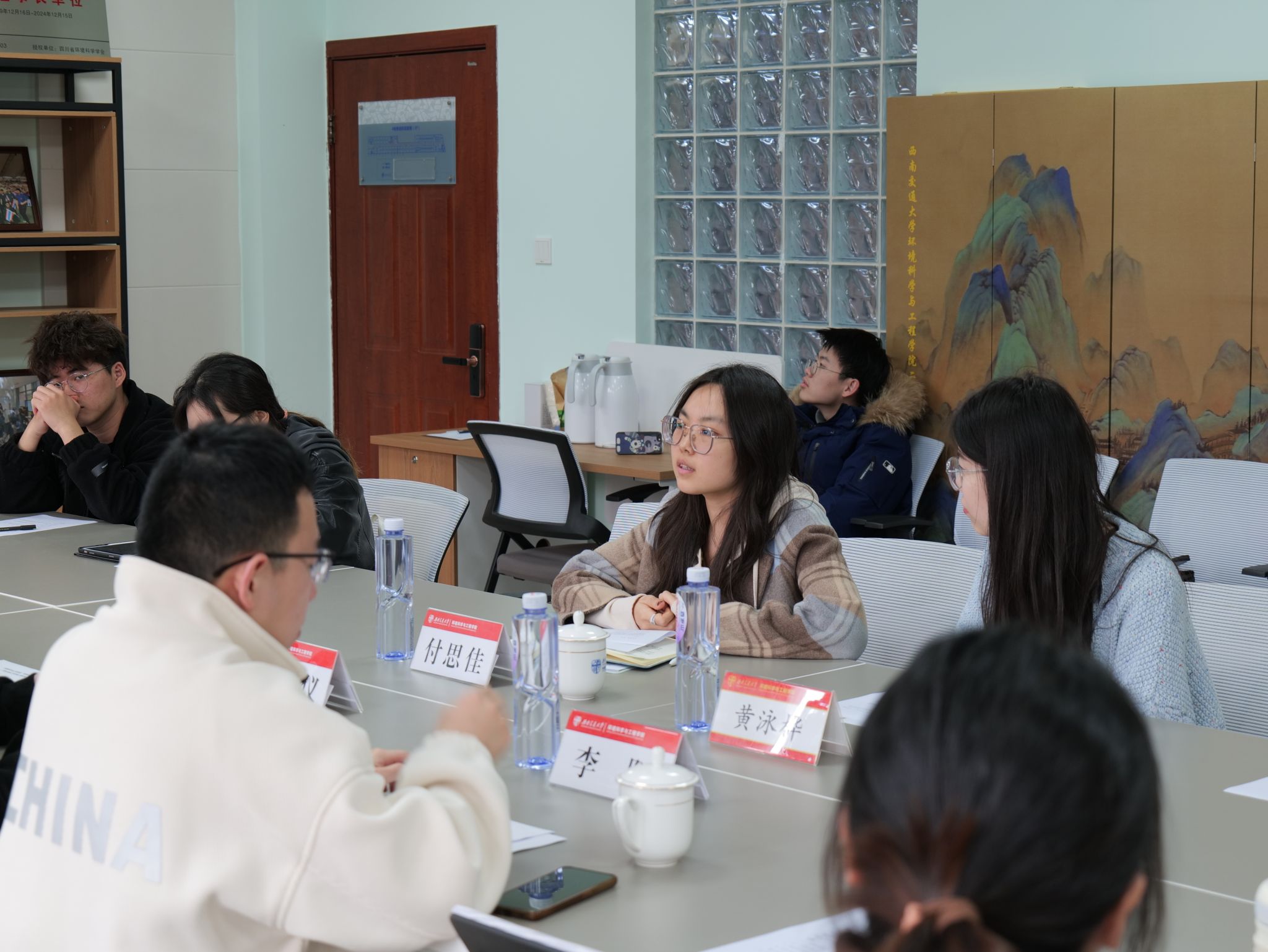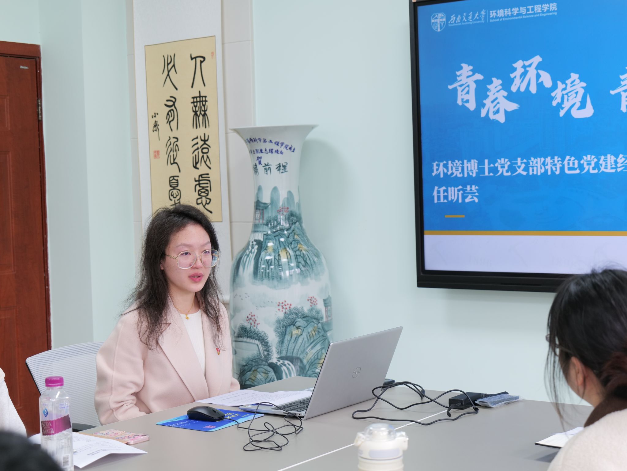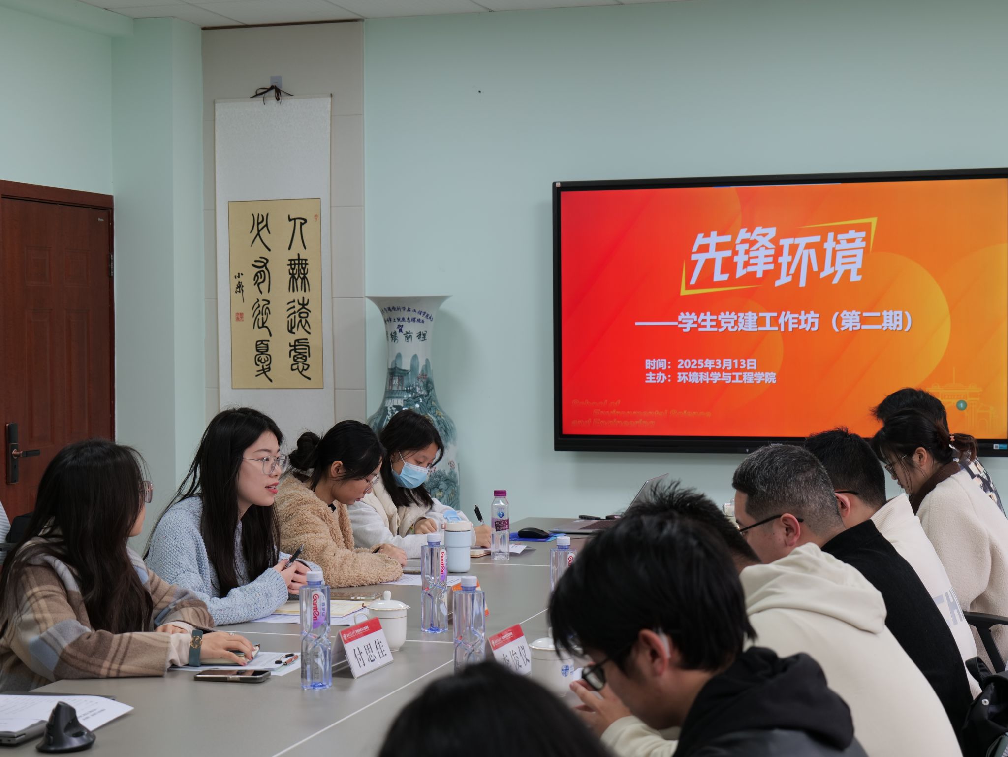 环境博士党支部书记任昕芸以《青春环境 青年先行》为题进行经验分享。针对博士党员科研任务重的突出特点,支部严格落实支委目标责任,实施党员挂牌管理,加强流动党员管理,夯实基础促提升。同时,提出“党建+专业”建设思路,通过校企联学共建,以党建引领专业成长。本科环境第一党支部书记闫灵洁以《坚守初心,笃行不息》为题,分享了支部日常工作、特色党建活动组织以及服务同学成长的经验。她鼓励各支部将党建与学科融合,办好特色党日活动,发挥党员先锋模范作用,积极回应同学和学院需求,努力打造“学习型、服务型、创新型”学生党支部。
