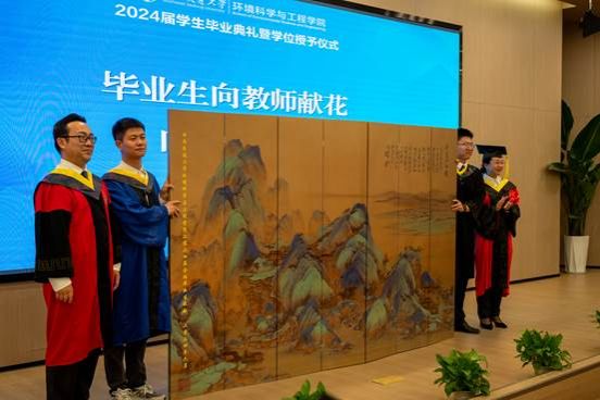 同时,学院也为毕业生们准备了精美的礼物,包括毕业纪念册、环境纸扇,愿大家山水相依环境人,一生一世环境情。