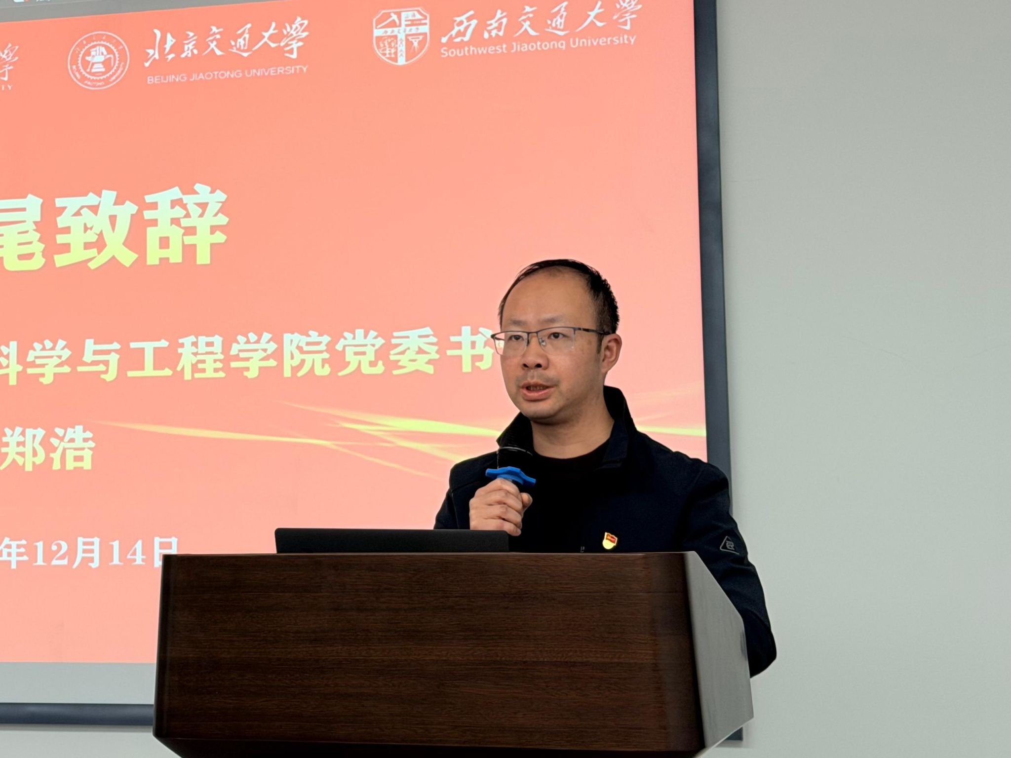 活动最后,西安交通大学人居环境与建筑工程学院党委书记杨鹏、上海交通大学第一版主 党委书记郑浩作总结讲话。杨鹏强调,四校同根同源,使命相连。他希望以此次活动为起点,以党建引领,切实将理论学习成果转化为服务国家重大战略需求的实践行动。郑浩指出,在130周年校庆之际,四个学院师生们要从百卅校史中汲取力量,将敢为人先精神转化为守护绿水青山的行动自觉,助力学科实现从跟跑到领跑的跨越,努力将四院打造为绿色发展的创新策源地,以扎实业绩为交通大学建校130周年献礼。
