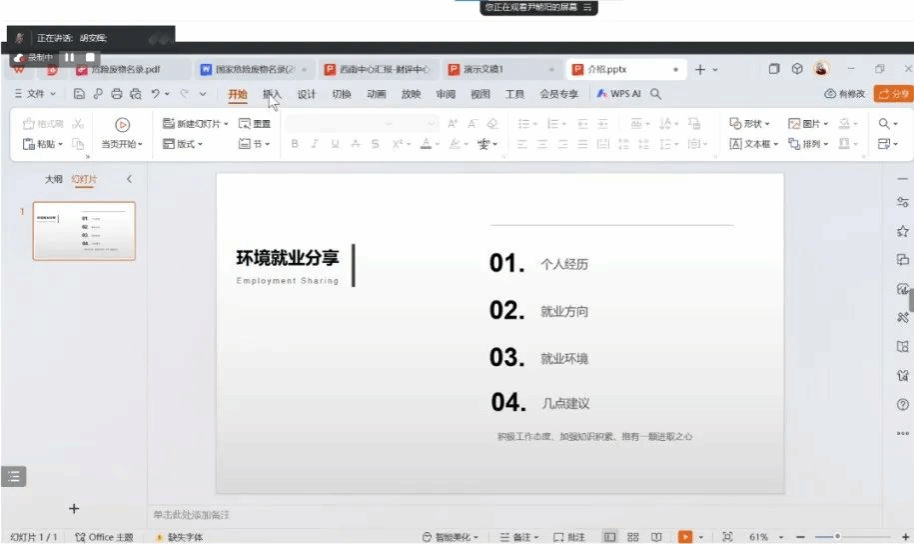 ,现就职于四川省生态环境科学研究院,任固体所副所长。尹朝阳学长从环境学科就业方向的角度出发,为同学们分析了各个职业选择的优势,帮助同学们梳理不同职业的工作内容和所需要的条件,分享他在就业时的经验和想法。他特别强调了同学们要发挥学习的主观能动性,培养终身学习的观念,主动积极学习行业最新的政策和方法,紧跟国家发展步伐,以此来提高职场竞争力。