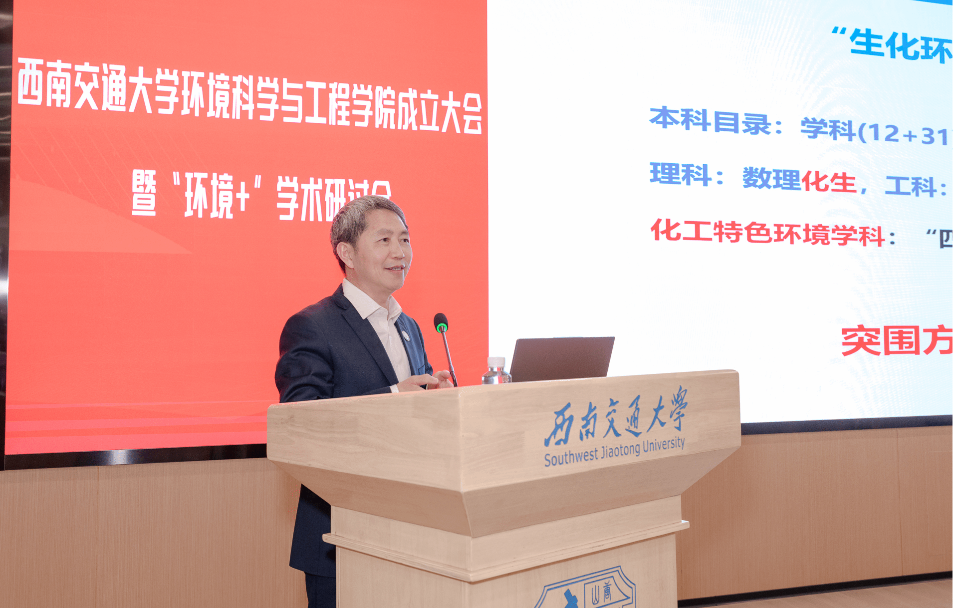 的成立表示热烈祝贺,对环境学科的老领导、老同志以及广大教职员工致以崇高的敬意,向长期关心和大力支持学校办学事业的社会各界人士、海内外环境校友表示衷心感谢。余敏明指出,学校高度重视环境学科的建设,强化学科内涵式发展,加强学科专业发展规划,加大资源保障力度,推动学科发展取得了长足的进步。当前,学院师资队伍呈现良好的发展态势,科研水平不断提升,共建高速铁路安全运营空间信息技术国家地方联合工程实验室,拥有一个环境污染控制省部级重点实验室,面向交通强国、绿色发展的国家战略部署,结合学校轨道交通学科集群的优势,先后承担国家、省部级科研项目400余项,在交通工程、环境控制、区域开放、环境保护等方面形成了鲜明特色,产出一大批高水平的研究成果,为青藏铁路、京沪高铁等国家重大工程建设和四川省生态环境保护做出了重大贡献。余敏明要求,第一版主