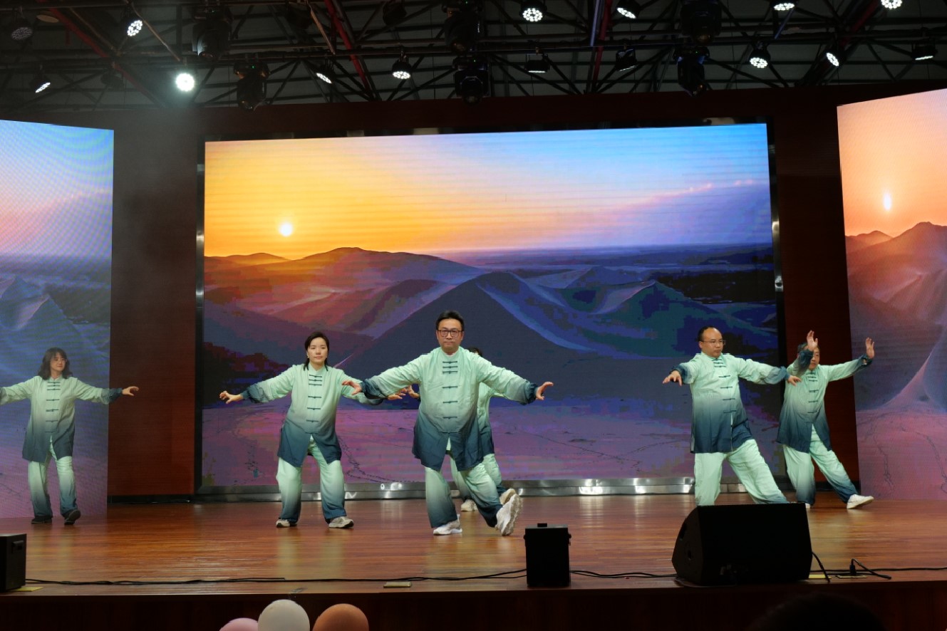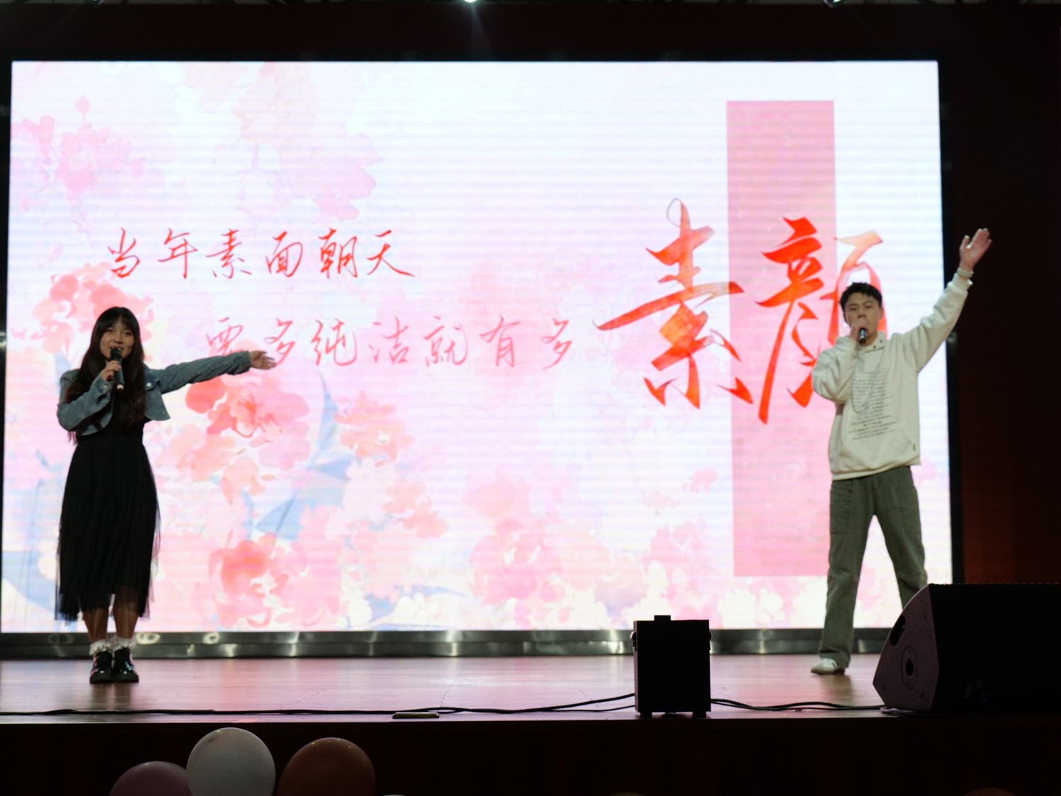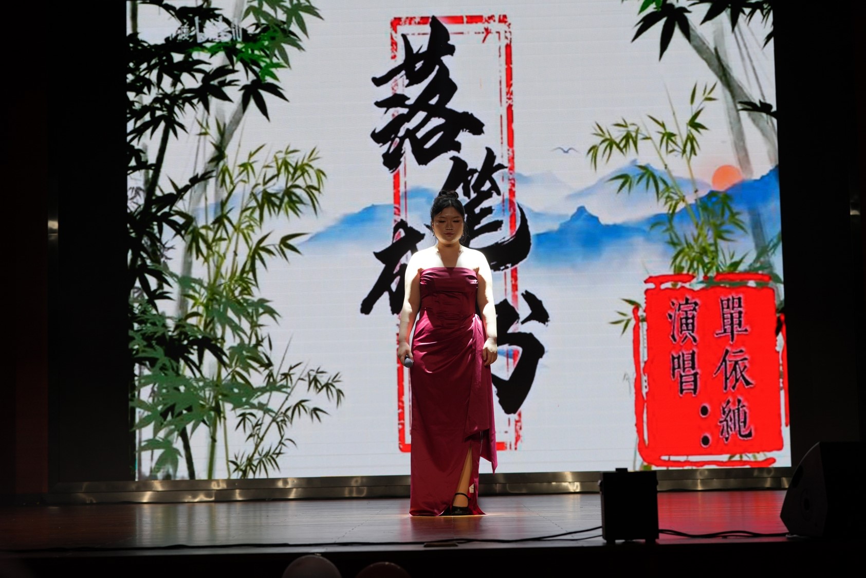 在第二篇章“古韵流芳”中,师生同台为我们献上了一场关于“中华优秀传统文化”的视听盛宴。由甘霖创作并演唱,杜思奇、朱可馨伴舞的《卜算子·咏梅》,如同一幅流动的红梅傲雪图,尽显中国古典韵味。研究生会带来的歌曲《素颜》扣人心弦,回响无穷。舞蹈《唐印》,舞者婀娜曼妙,翩然起舞,仿佛将观众带入了盛唐的繁华。谭洺楷的《河山大好》唱响了山河豪情。学院机关老师的《养生气功·五禽戏》则别具一格,展现了中华传统体育精神和养生文化的深厚底蕴。这一篇章让现场观众对“中国古典文化”一词有了更深刻的理解,进一步感受到了中华优秀传统文化的魅力与厚重。