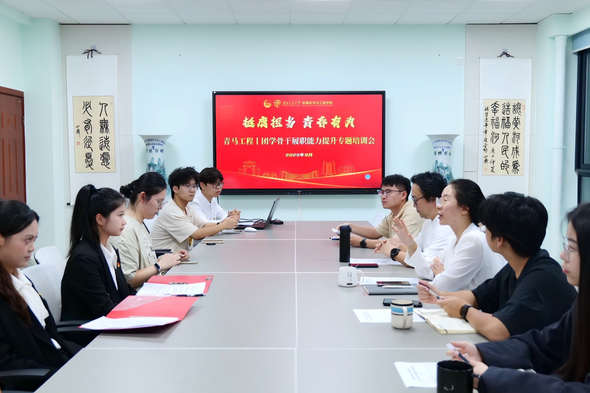 团委邀请学院党委书记甘霖于X4348教室,面向学院团学骨干、社团负责人开展“弘扬抗战精神,勇作环保先锋”主题团课宣讲。