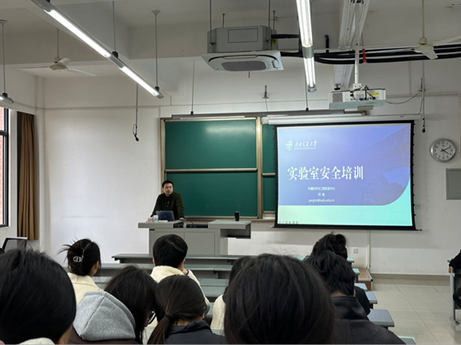 1125日下午16:00,第一版主 实验中心副主任何杨老师在犀浦校区X9301教室开展了主题为“实验室安全培训”的讲座,全体在校研究生参加此次讲座。