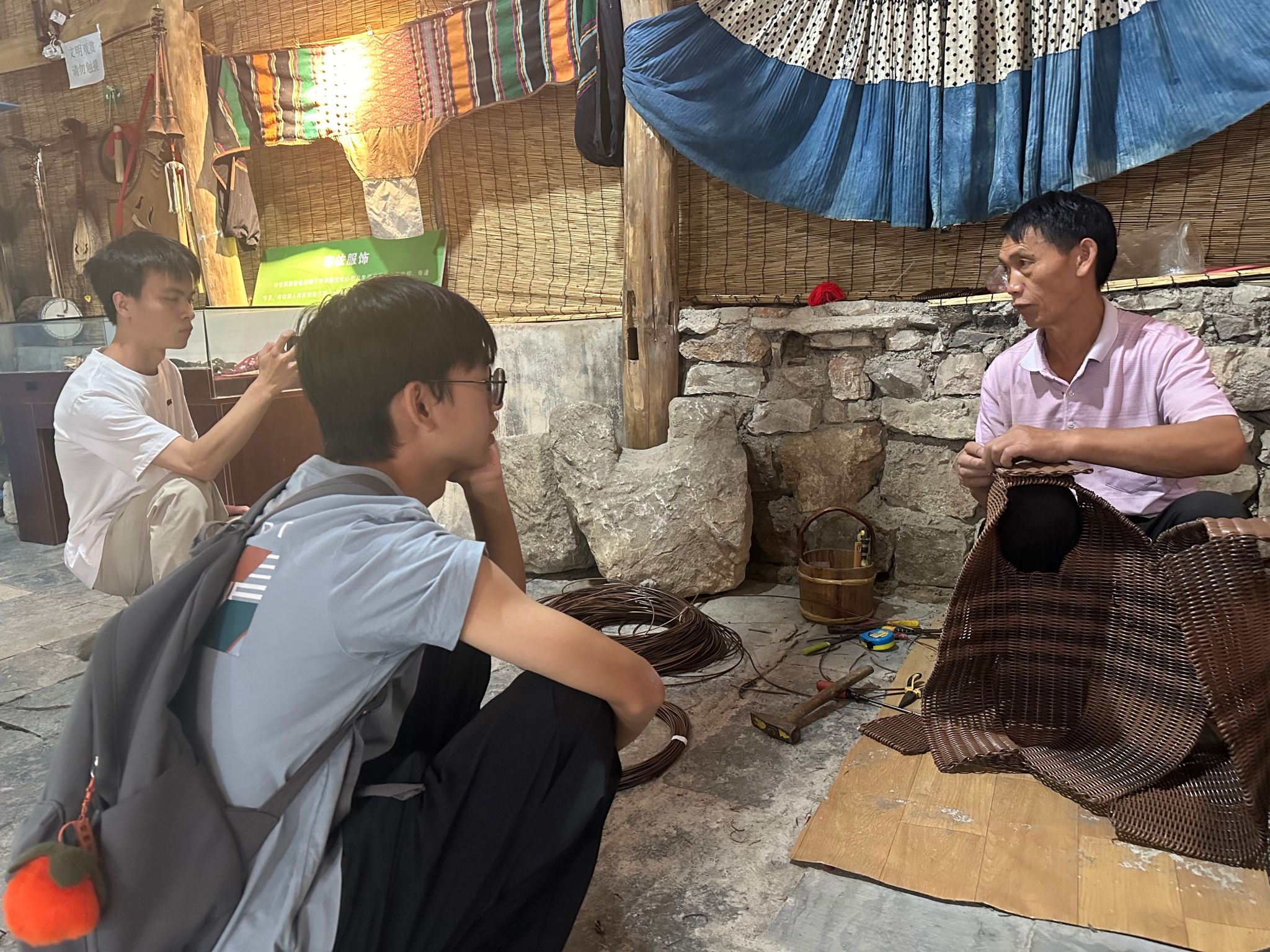 实践队首站来到“布依族石刻博物馆”镇宁高荡古村落。在与村支书伍承松的座谈中,队员们深入了解了高荡村在保护民族特色建筑、传承民族文化和推动乡村旅游发展中促进民族团结的生动实践,并就民族地区传统村落的环境治理与可持续发展问题进行了探讨。在弄染长征文化爱国主义研学基地,实践队通过参观学习红军长征过安顺、与少数民族同胞结下深厚情谊的历史,队员们深刻理解了长征不仅是军事史上的奇迹,更是一部民族团结的壮丽史诗。历史的回响让大家对“中华民族一家亲,同心共筑中国梦”的时代内涵有了更真切的感悟。在阿歪寨村,实践队调研了当地如何将独特的“藤甲文化”IP与乡村振兴、民宿产业创新融合。通过与村支书韦俊及返乡创业青年的交流,队员们看到了民族文化赋能乡村振兴的巨大潜力,也了解到新时代布依族青年如何在本土文化与现代潮流中寻找平衡,成为促进各民族交往交流交融的生动纽带。最后一站,团队与安顺市民族宗教事务委员会负责同志进行了专题座谈。会上,团队汇报了此次调研的见闻和思考,并从宏观政策、市域规划层面,深入了解了安顺市在推进民族团结进步创建、铸牢中华民族共同体意识方面的整体布局与创新举措。市民委负责同志对交大学子深入基层表示赞赏,并就团队宣讲内容给予了专业指导,为本次实践画上了圆满的句号。