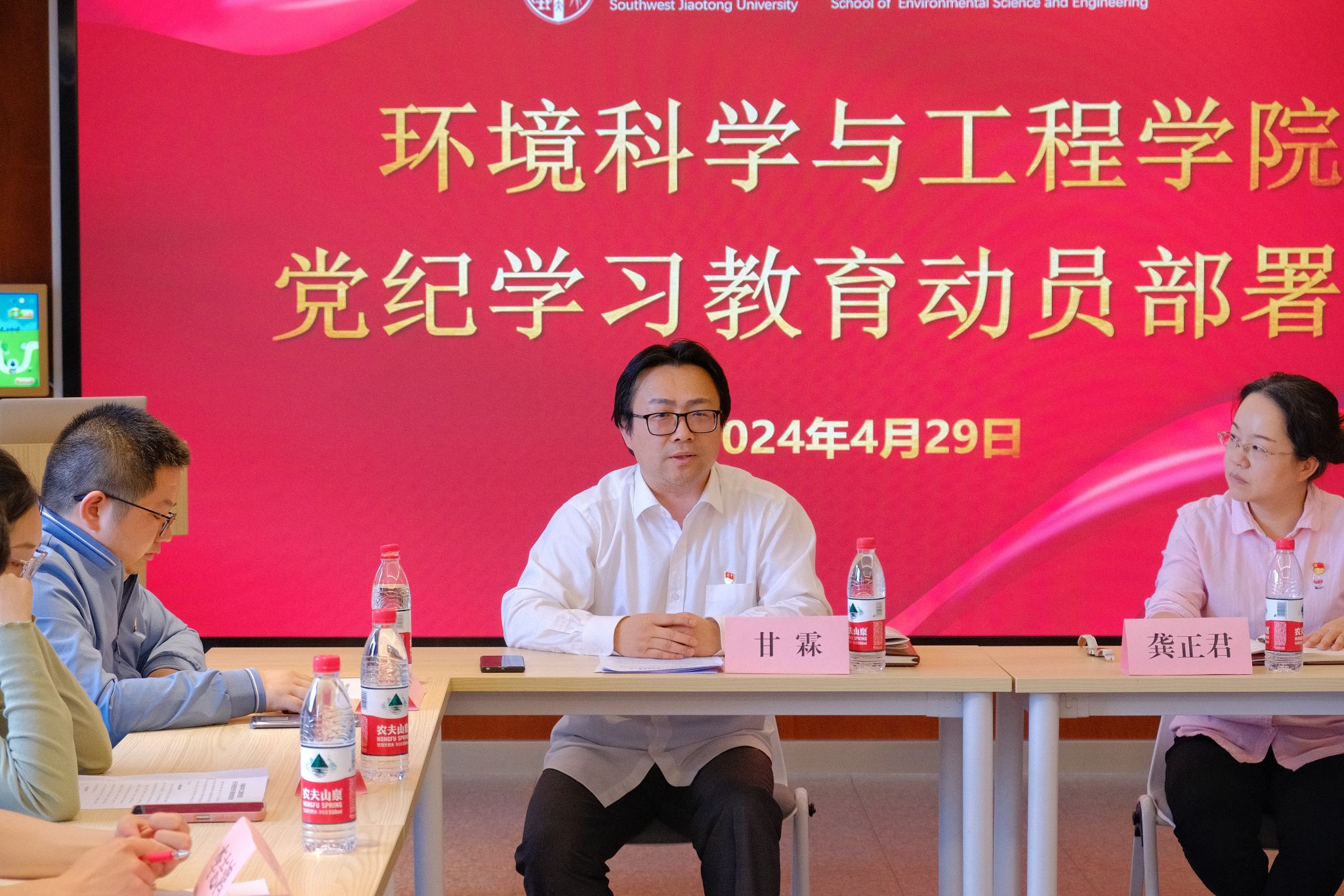 会议伊始,党委书记甘霖传达了学校关于开展党纪学习教育的有关文件精神,并从学院党委、教工党支部、学生党支部三个层面为学院党纪学习教育工作作部署安排,并分别提出工作任务要求。