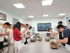 活动伊始,翠绿的粽叶、雪白的糯米、浓稠的红糖水、硕大的鸭蛋等原料早已准备就绪。经验丰富的老党员同志主动化身“技术指导”,现场演示卷叶、填米、裹实、扎绳的娴熟技艺。年轻党员们跃跃欲试,或认真模仿,或虚心求教。全体党员都亲自下手,包粽子、制作糯米蛋,活动现场笑语盈盈,其乐融融。卷叶时的小心翼翼,填米时的满满当当,捆扎时的巧手翻飞,每一个步骤都凝聚着对中华传统习俗的尊重与传承。当一个个形态各异却饱含“中国心”的粽子在手中诞生,大家不仅体验了劳动创造的喜悦,更深切感受到中华传统节日所承载的深厚文化底蕴与家国情怀,民族认同感与自豪感油然而生。