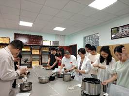 在煮粽子和蒸糯米蛋期间,全体党员共同观看了精心挑选的革命历史题材影片《望道》。随着影片情节深入展开,银幕上革命先辈们为民族独立、人民解放抛头颅、洒热血,在极端艰难困苦中展现出的坚定信念与不屈意志,深深震撼着每一位在场党员的心灵。当看到革命先辈面对严刑拷打却视死如归,面对重重围困仍浴血突围的场景时,不少同志眼中噙满热泪。尤其是影片中,陈望道先生在翻译《共产党宣言》时过于投入,吃粽子误把墨汁当成糖蘸着吃,还说很甜。这真是“真理的味道很甜”,两代共产党员跨越时空的品味粽子与感悟真理成为一种信仰的传递,大家都沉浸于《望道》崇高的理想主义光辉与深沉的家国情怀之中。同志们纷纷表示,这堂“光影党课”让抽象的革命精神变得可感可触、直抵人心。影片落幕,支部邀请了学院领导及行政人员和支部全体党员一起品尝了清香的粽子和金黄的糯米蛋,大家对支部同志们的劳动成果赞不绝口。