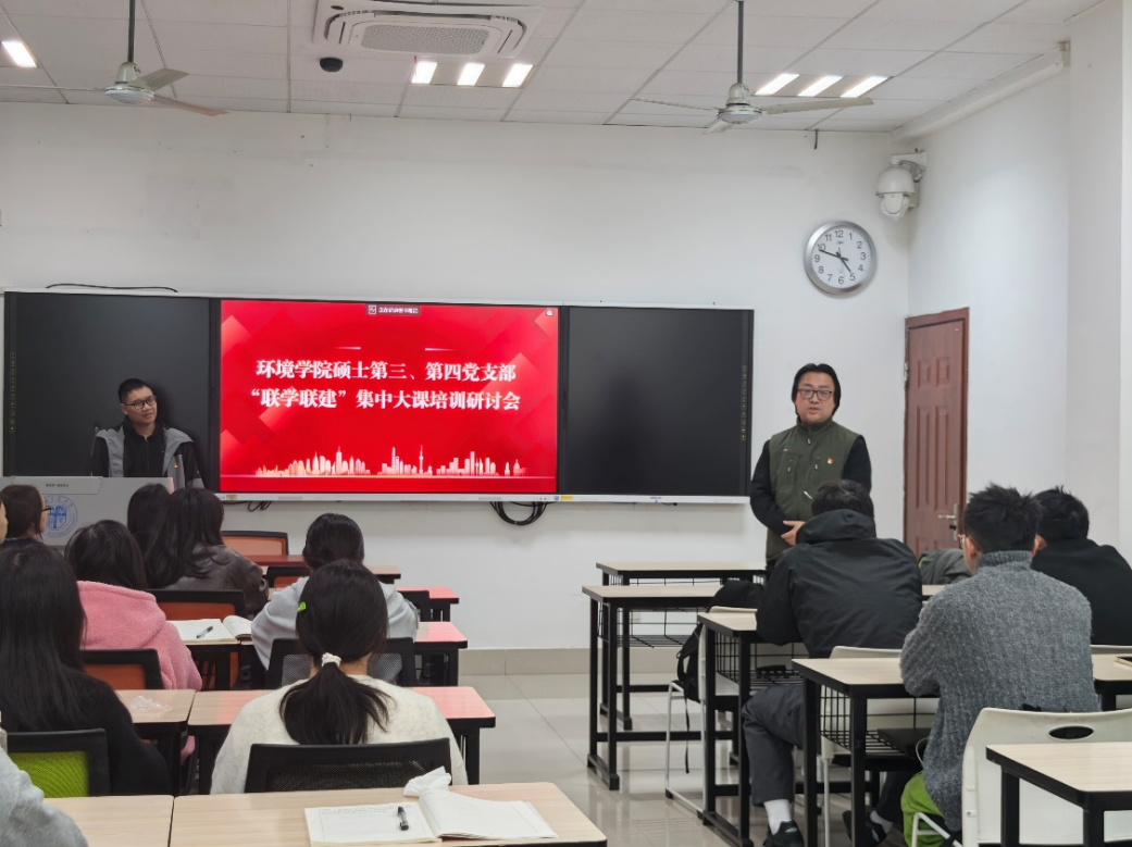 其中,赵屹玮同学谈到:作为一名环境科学专业的研究生党员,学习和研究的正是如何理解、保护和改善我们赖以生存的生态环境,深感使命光荣、责任重大。傅心怡同学谈到:我们所学的污染防治、生态修复技术,正是建设“美丽中国”、实现绿色发展的关键一环,我们应该胸怀大局,未来到祖国最需要的地方去,将个人价值锚定在服务国家与社会的实处。杨舒寒同学谈到:我们要努力把论文写在祖国的大地上,为建设人与自然和谐共生的现代化贡献自己的青春力量。徐思远同学谈到:我们要强化学习与创新意识,持续学习前沿知识,力争成为能解决实际问题的专业人才……