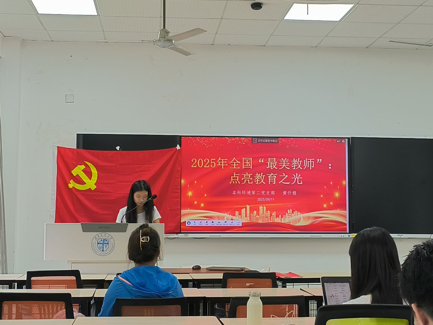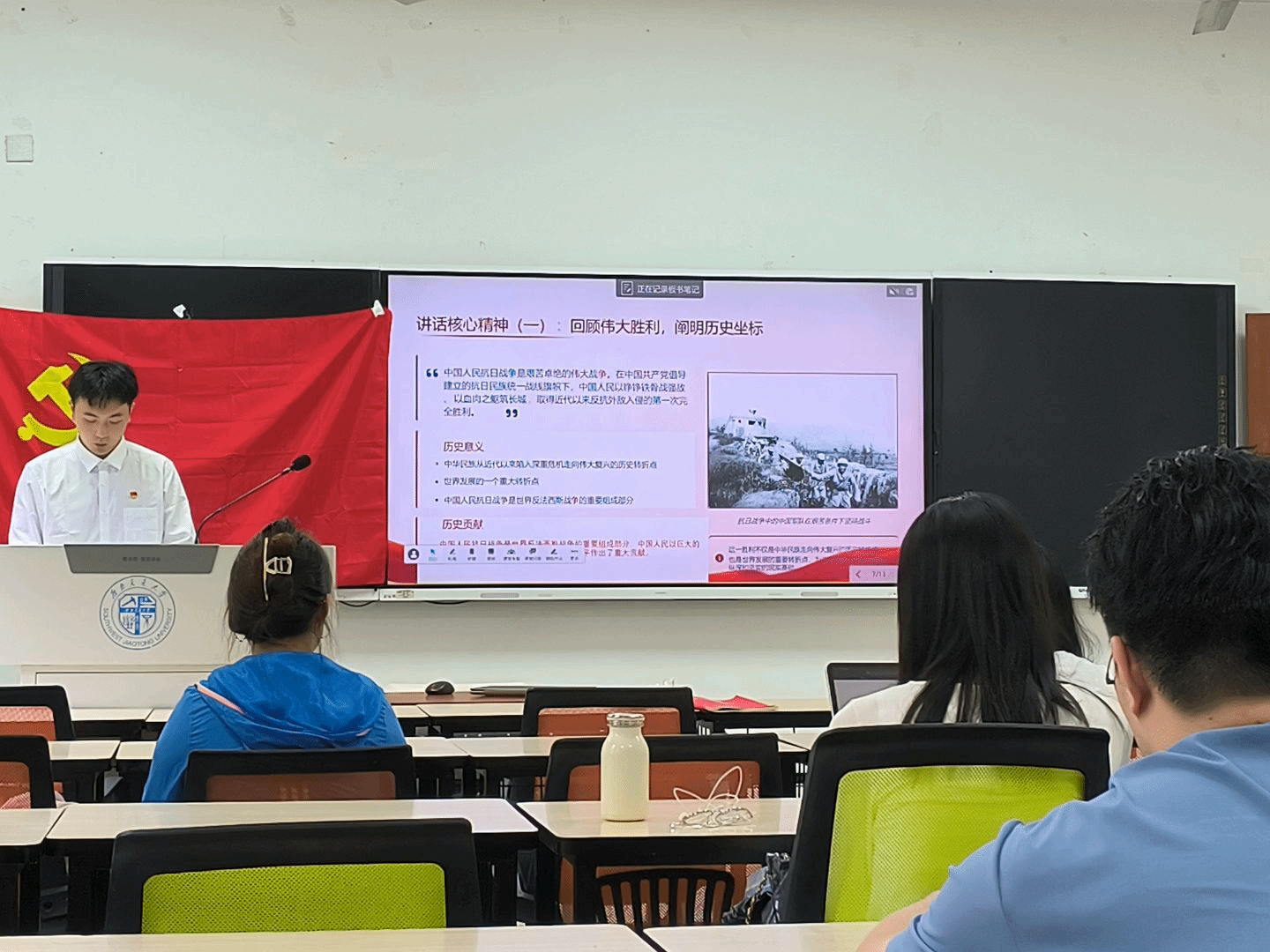 为深入学习贯彻习近平新时代中国特色社会主义思想,引导青年党员从历史中汲取力量,在榜样前明确方向,9月11日,本科环境第二党支部在X4137教室开展了“以伟大抗战精神固本铸魂,以教育家精神强师筑梦”主题党日活动。