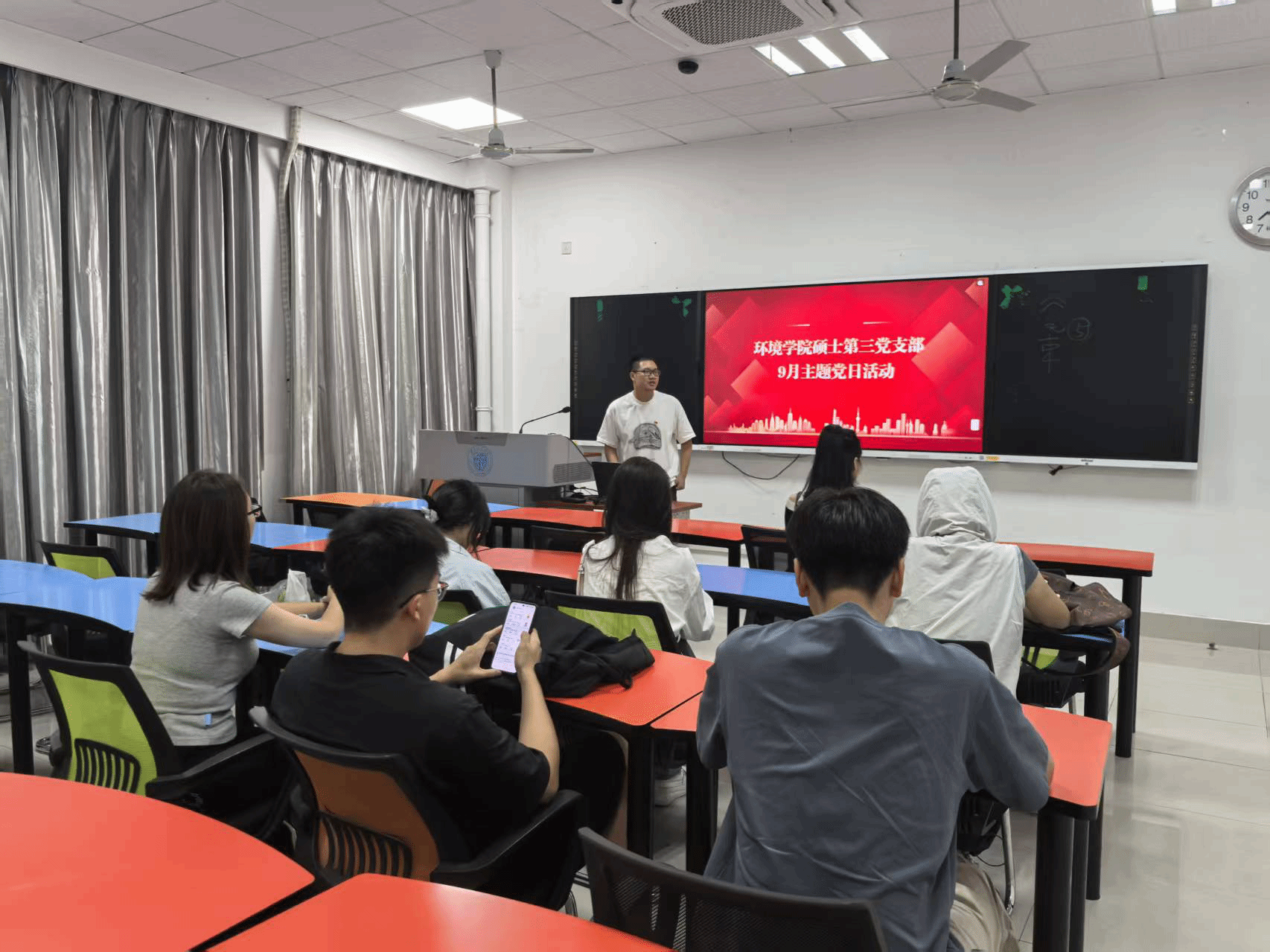 硕士第三党支部在X4136教室开展了9月主题党日活动。本次党日活动学习主题为“以伟大抗战精神固本铸魂,以教育家精神强师筑梦”,活动的形式为开展实践活动,以铭记幸福生活的来之不易与自觉坚定理想信念。围绕党日活动的主题,为深切缅怀革命先烈,进一步强化支部党员党性修养,本次党支部选择集中观看红色题材影片《八佰》。同时结合党员思想实际和学习工作实际开展观影后的交流研讨。活动采用线下线上相结合的方式,活动由党支部书记唐若愚主持。