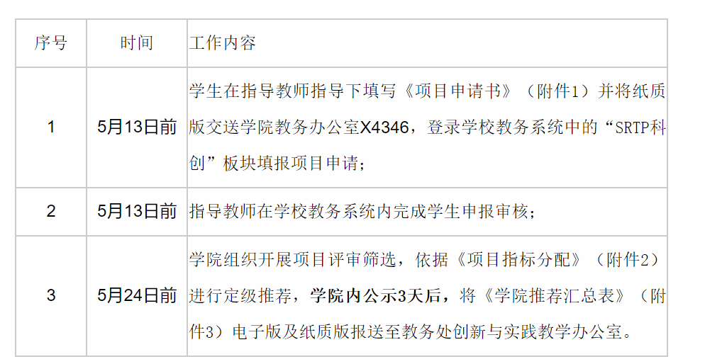 (2)大学生创新训练计划项目立项评审结果须在学院内公示3天,无异议后将《学院推荐项目汇总表》(附件3)电子版和纸质版报送至教务处。