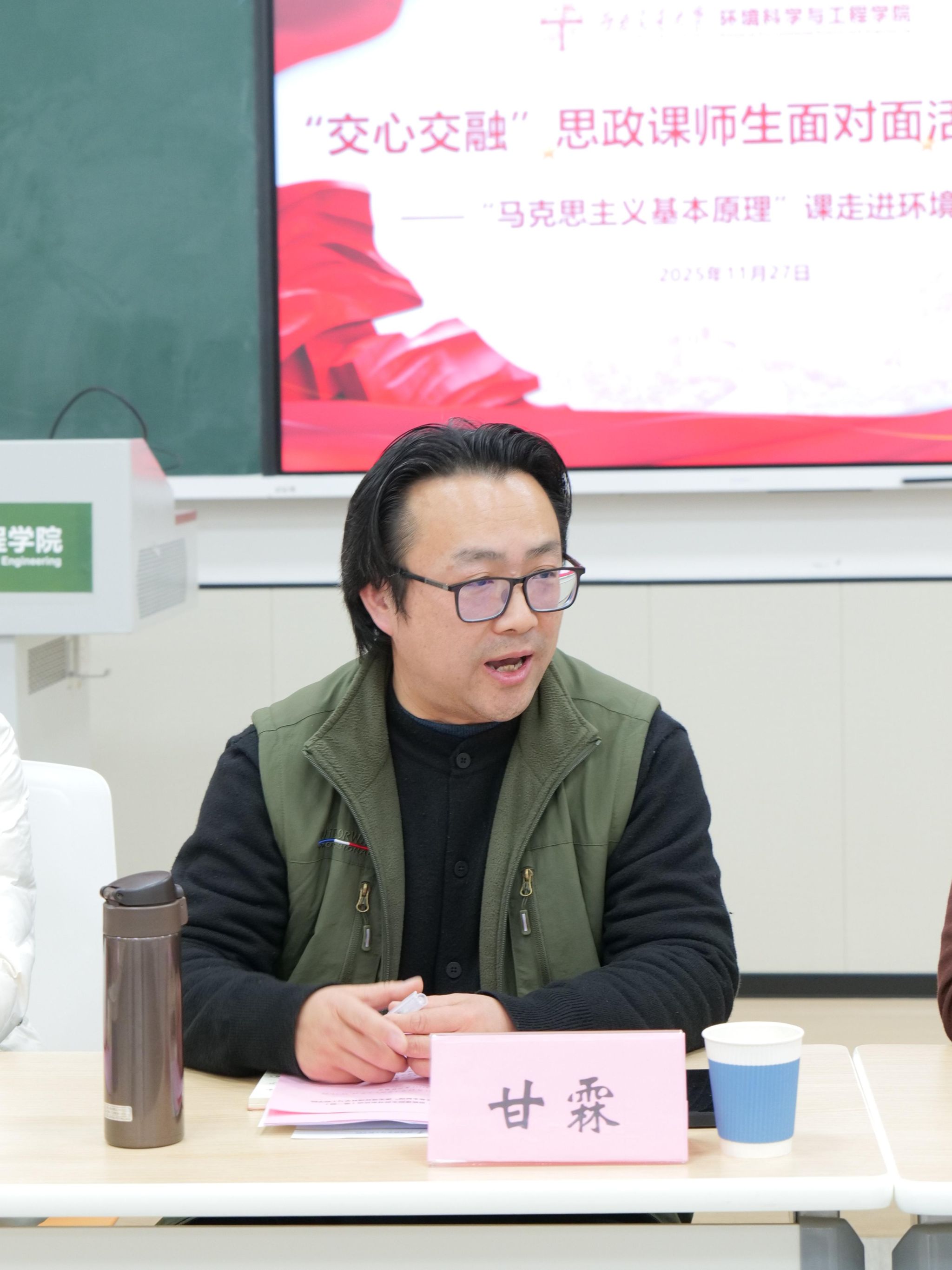 党委书记甘霖作总结讲话。他高度肯定了本次活动取得的成效,指出师生在交流中凝聚的“专业+思政”融合共识,正是“交心交融”活动的核心价值所在——让理论不再“高高在上”,而是落地生根;让专业成长紧扣时代脉搏,锚定美丽中国建设的使命坐标,也期待学院与马克思主义学院紧密携手,共同推动思政教学创新与育人成效再上新台阶。